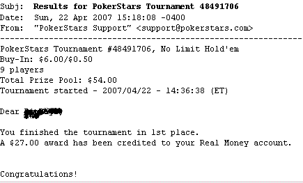 I covered the name to protect my modesty but it's very easy. The whole thing took just over half an hour - compare that to four hours at a 200 player freeroll to win the same amount of money.